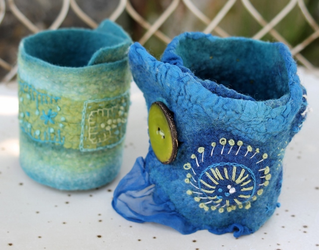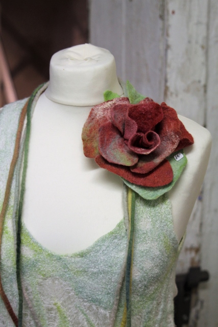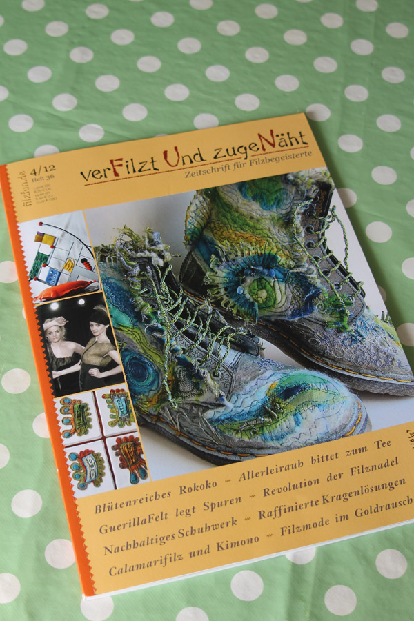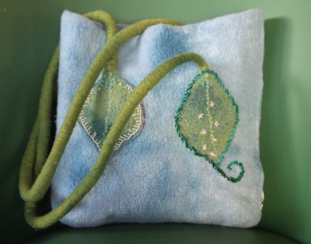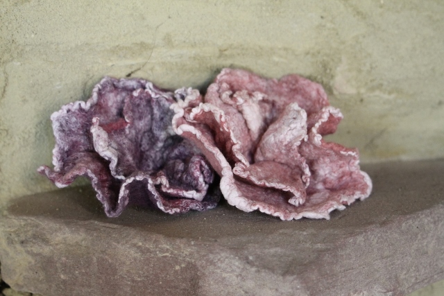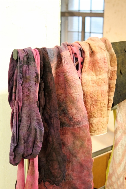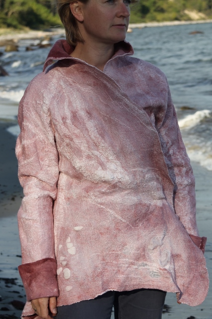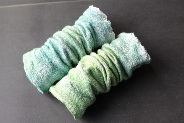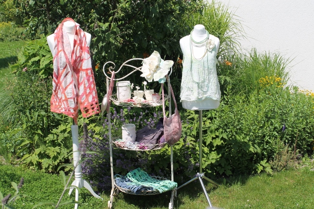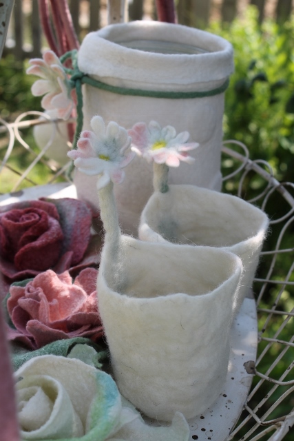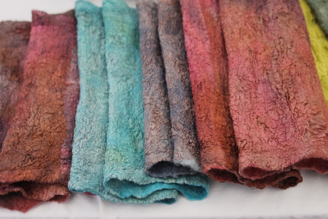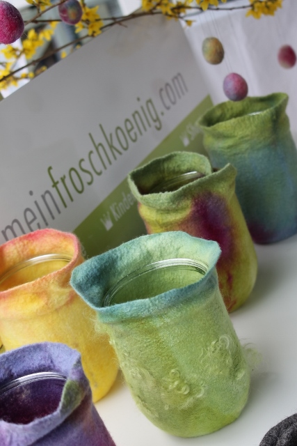 Seitdem ich 2005 das Filzen für mich entdecken durfte, habe ich mein Wissen diesbezüglich ständig erweitert. Ich färbe Filzwolle und Stoffe größtenteils selbst, experimentiere mit Naturdrucken, besticke die fertigen Filzteile, verarbeite Rohwolle, kardiere, filze Stoffe und Fasern ein… Die Möglichkeiten sind unendlich und sehr vielseitig!