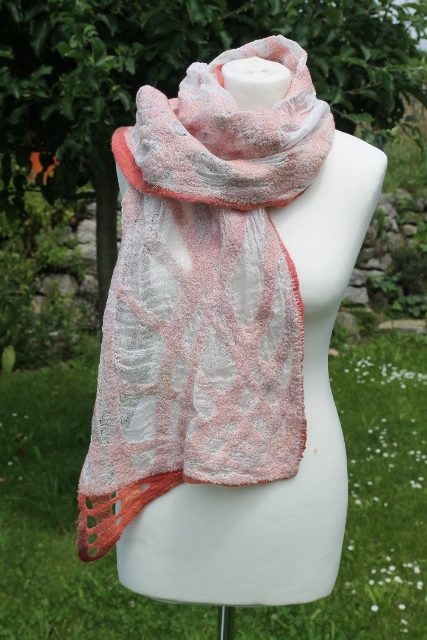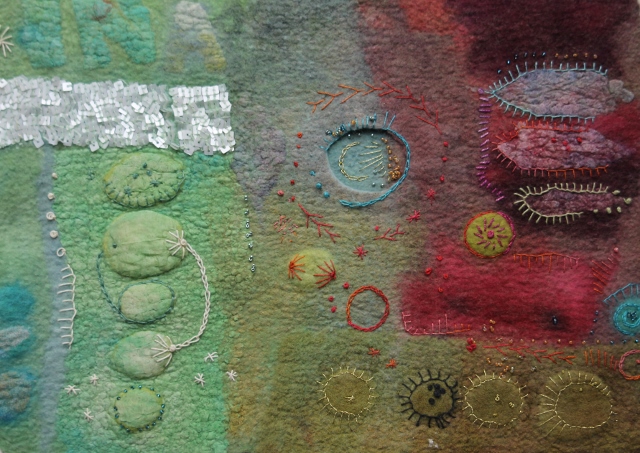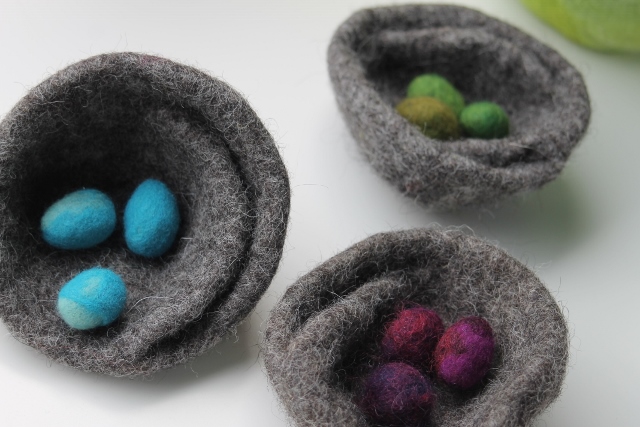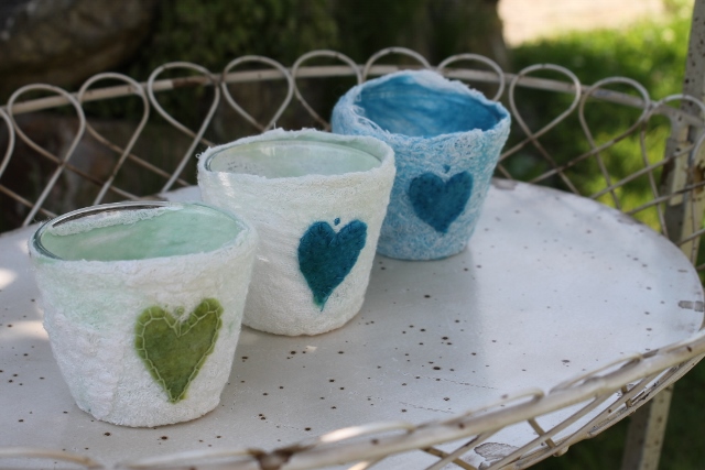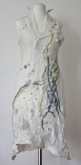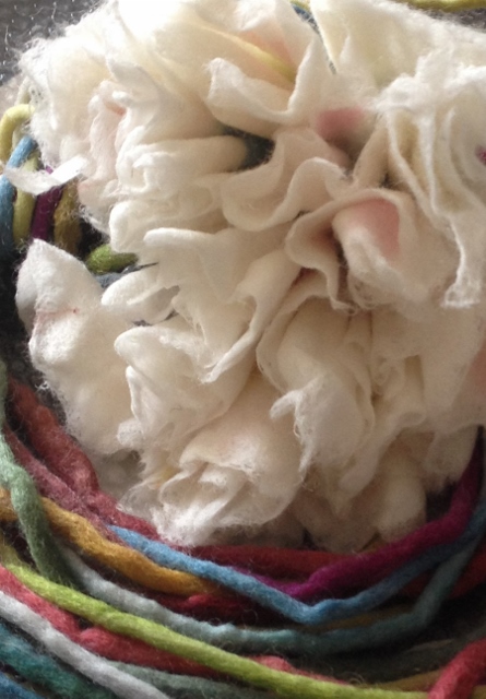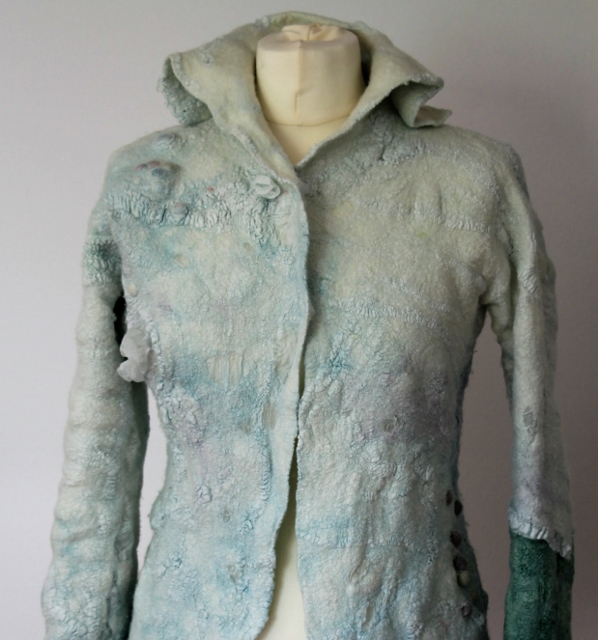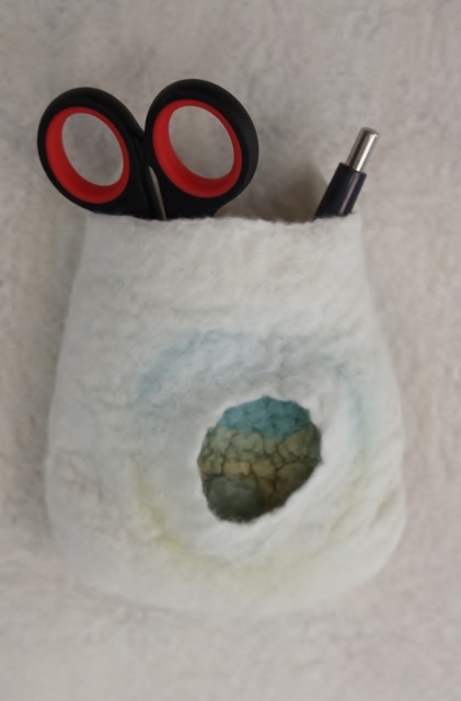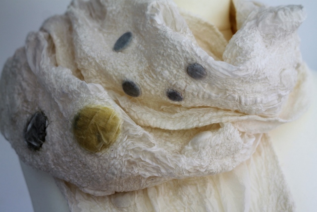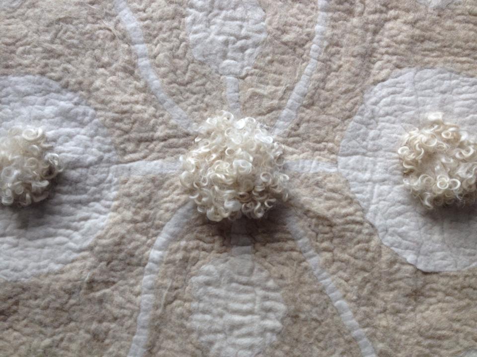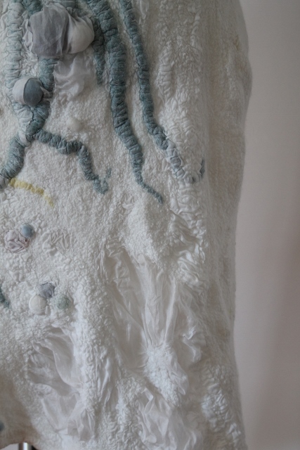 Seitdem ich 2005 das Filzen für mich entdecken durfte, habe ich mein Wissen diesbezüglich ständig erweitert. Ich färbe Filzwolle und Stoffe größtenteils selbst, experimentiere mit Naturdrucken, besticke die fertigen Filzteile, verarbeite Rohwolle, kardiere, filze Stoffe und Fasern ein… Die Möglichkeiten sind unendlich und sehr vielseitig!
